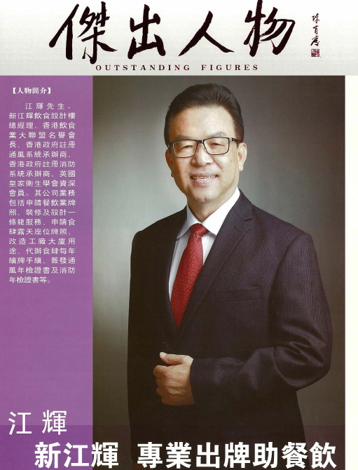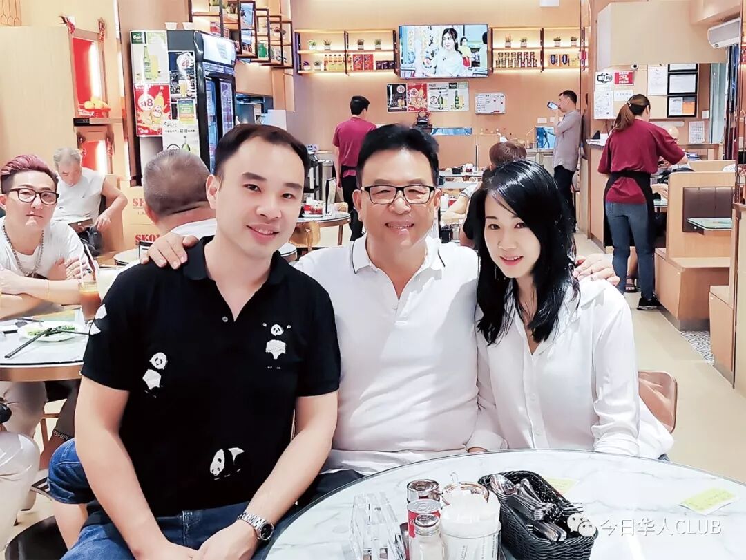 江輝先生與兒子江中、女兒江詠珊攝於新開業的蘇屋邨喜華餐廳(外貌)